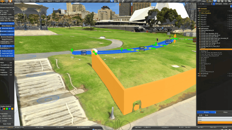 Live parametric planning of barriers in accurate 3D environments